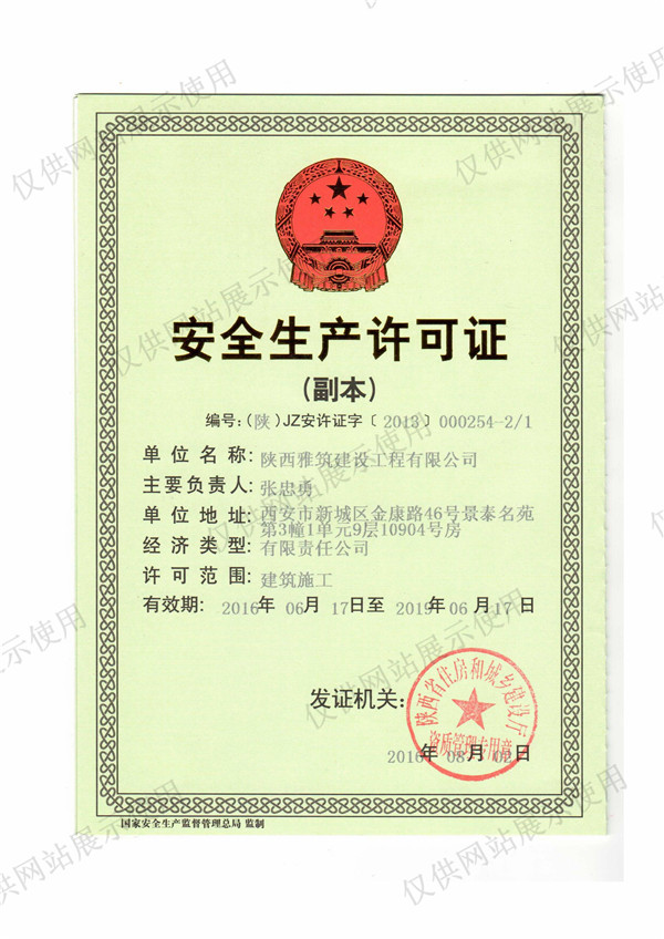 雅筑安全生產(chǎn)許可證